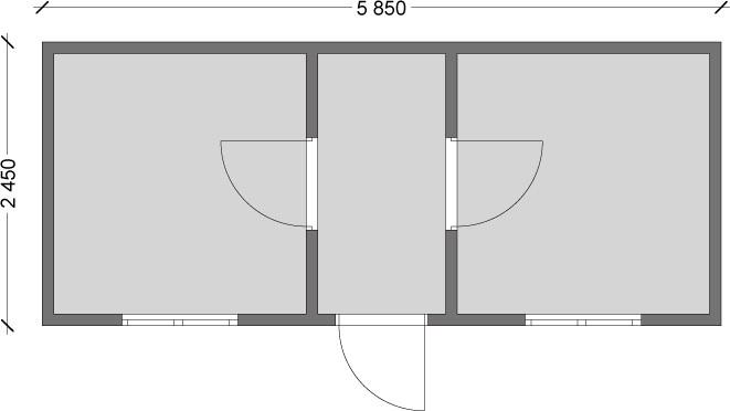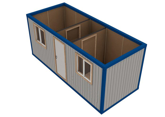 Двухкомнатная бытовка блок-контейнер. Тамбур посередине бытовки делит пространство на две равные комнаты. Организуйте в БК-04 прорабскую или офис продаж строительной компании.
