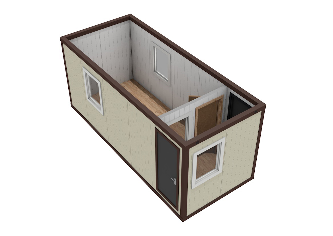 Сварной металл. Лист (цвет синий), стропила — брус 100*50 мм, парогидроизоляция, утеплитель — 100 мм URSA М-11 (Н/Г); отделка потолка — ПАНЕЛИ ПВХ (цвет белый)